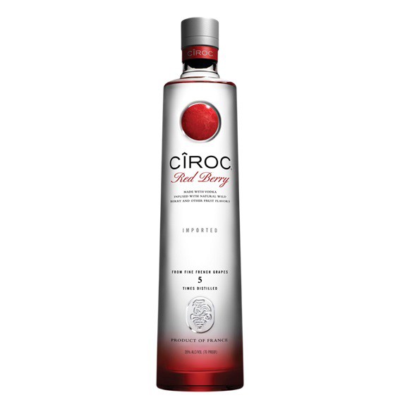 Vodka Cîroc Red Berry 750 ml. Vodka francesa. Com um preparo diferente das outras vodkas, que são feitas a partir de cevada, trigo, milho, ervas, centeio, ou figos a Cîroc é destilada exclusivamente com uvas francesas, tornando-a uma vodka de altíssima qualidade. A Cîroc Red Berry é feita com um sabor natural de framboesa e morango, tendo o segundo um sabor mais presente que o primeiro. Com isso o sabor final da vodka fica mais equilibrado.